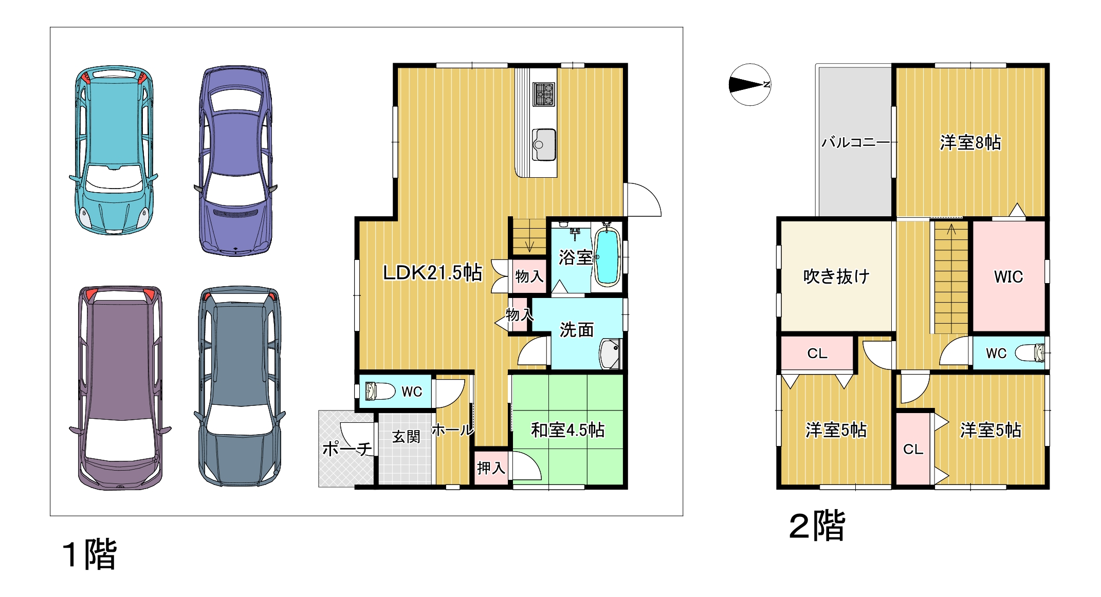 オール電化、IHコンロ、公共上下水道、駐車場4台、システムキッチン、浴室暖房乾燥機、トイレ温水洗浄便座、TVインターホン |